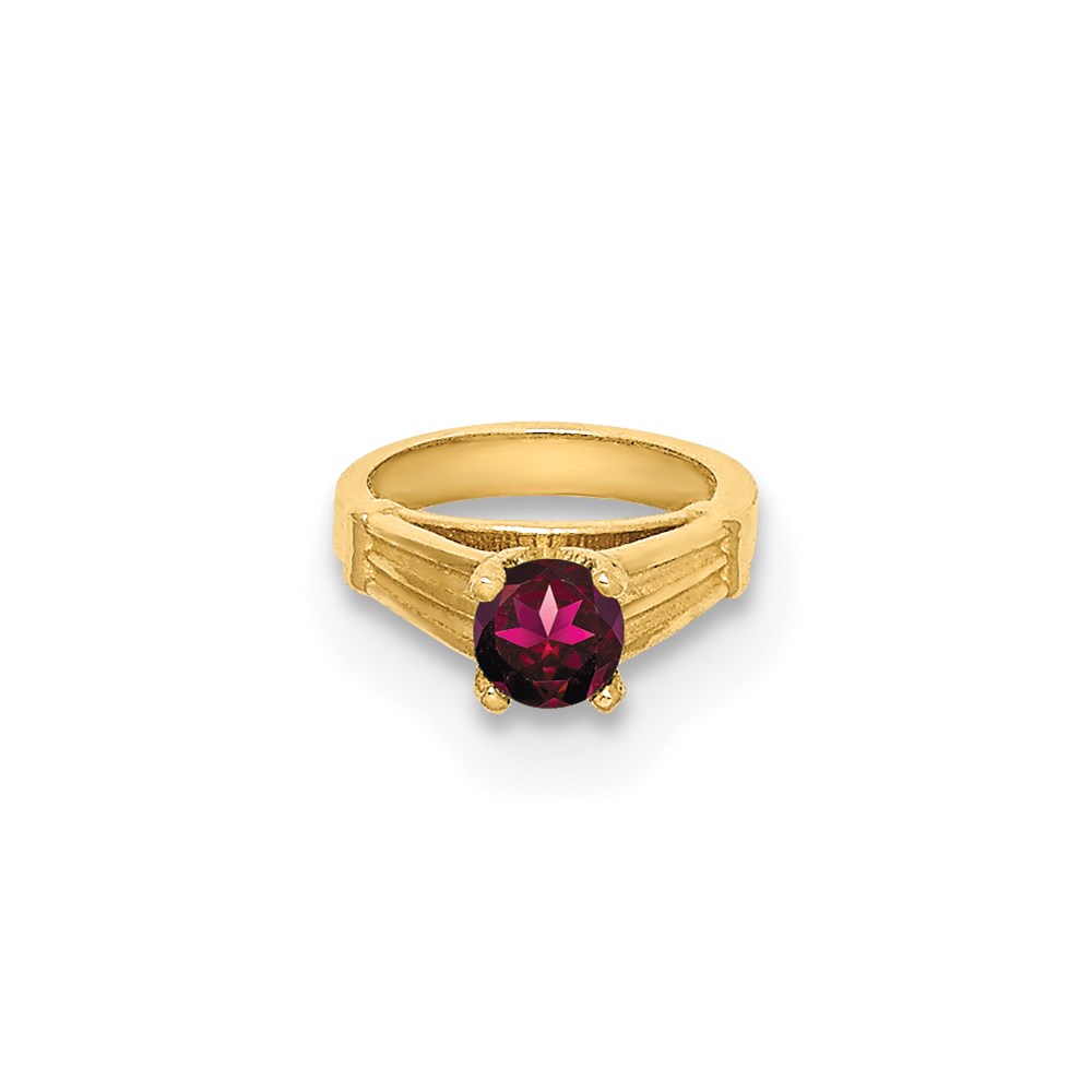 14K 3-D August Ring with Light Green Glass Stone Charm