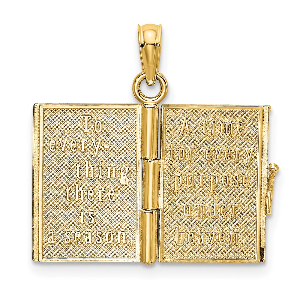 14K 3-D Multi-color Enamel Butterfly Ecclesiastes 3:1 Book with Moveable Pages Pendant