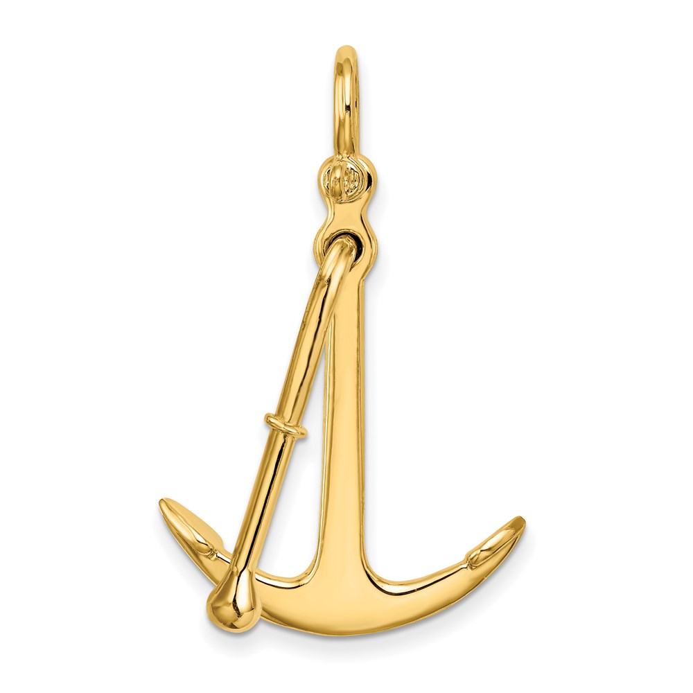 14K 3-D Polished Anchor 2-Piece and Moveable Charm