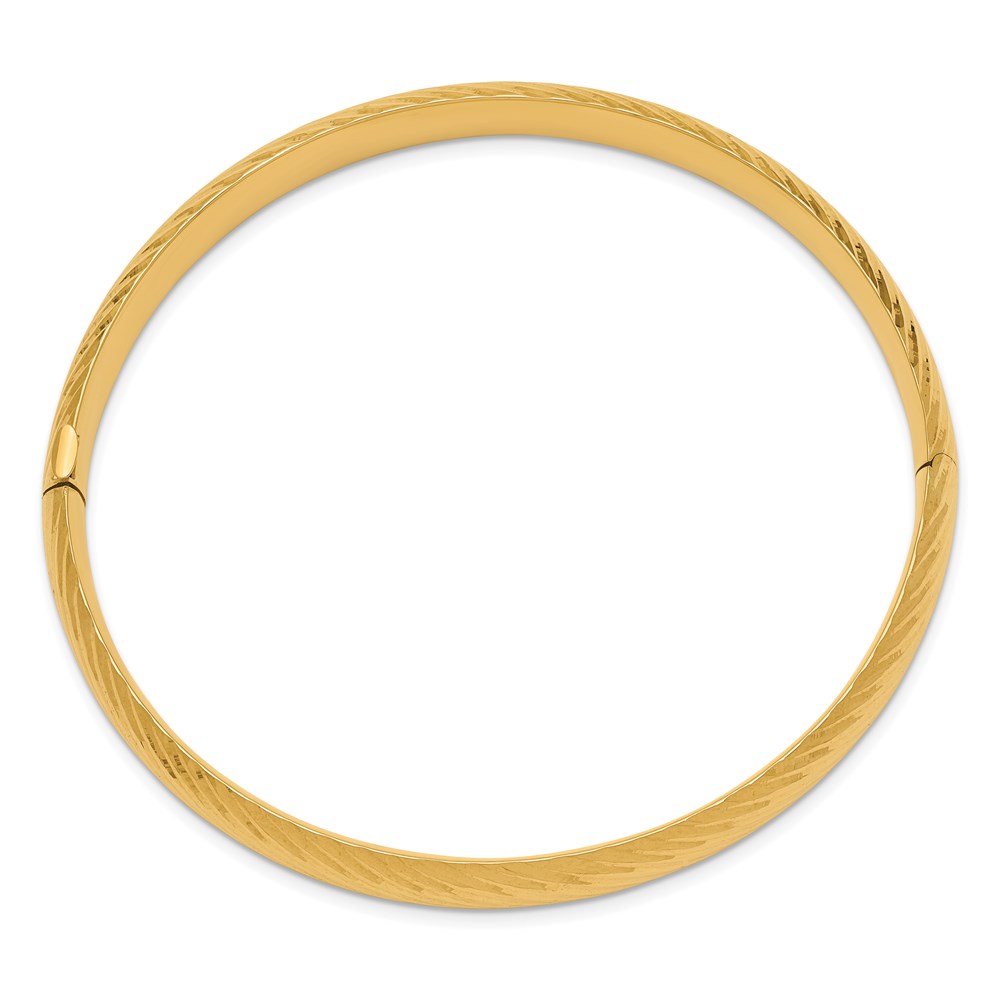 14k 5/16 Polished Textured 8.00mm Hinged Oval Bangle Bracelet