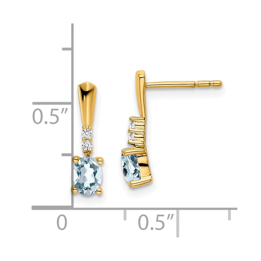 14K 5×3 Oval March/Aquamarine and Diamond Dangle Post Earrings