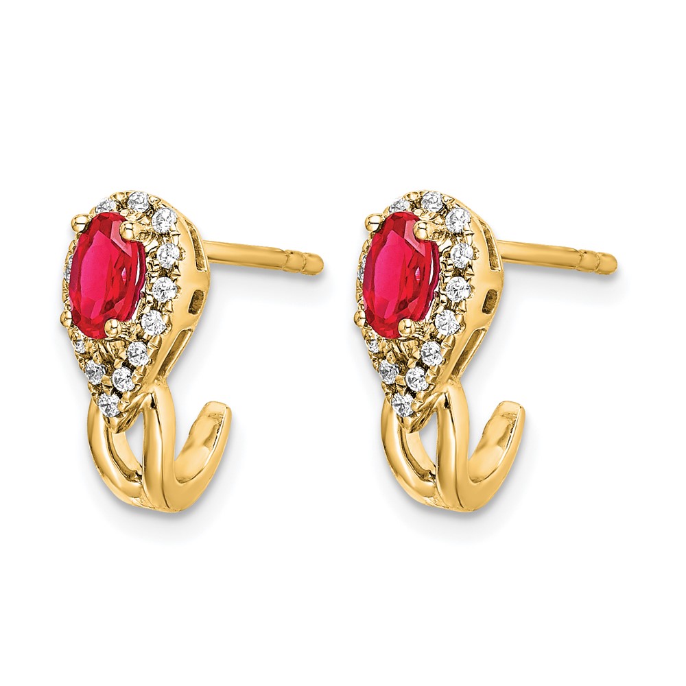 14k 5x3mm Oval Ruby and Diamond J-Hoop Post Earrings