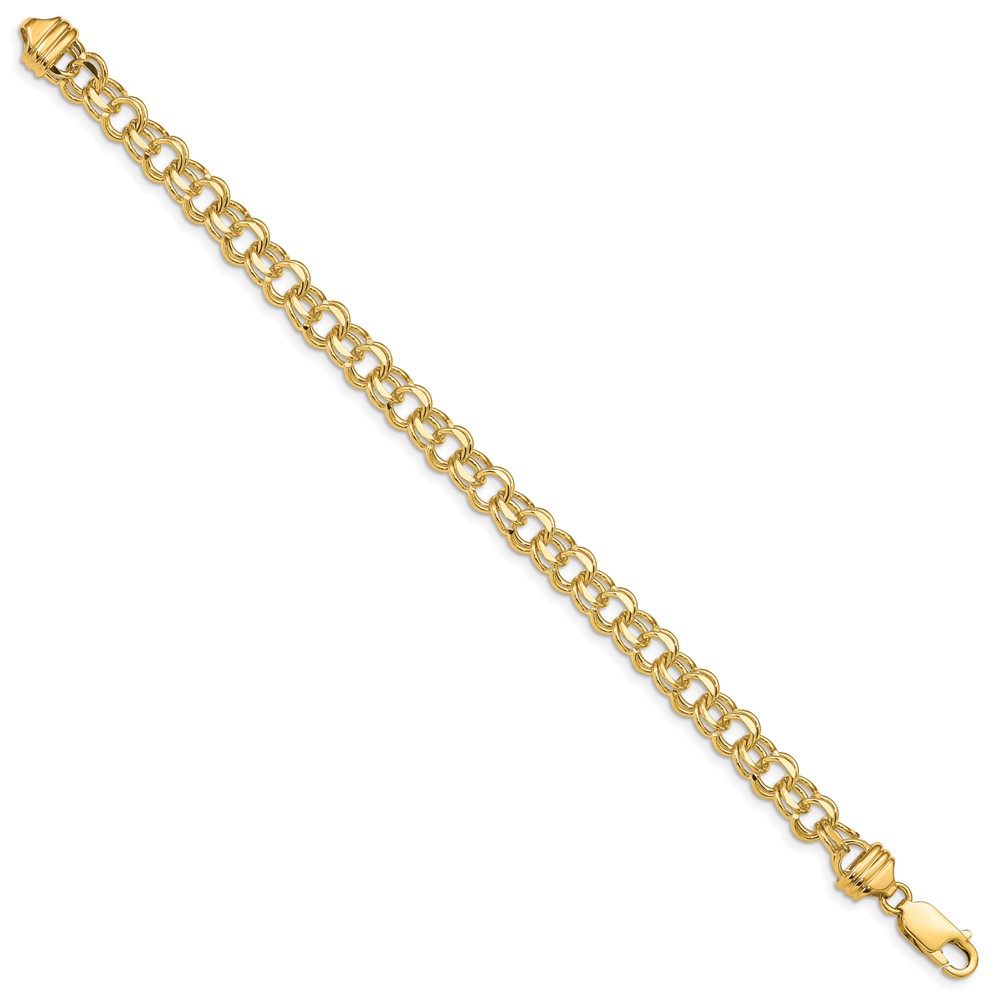 14k 7.5mm Diamond-cut Solid Heavy Double Link Charm Bracelet