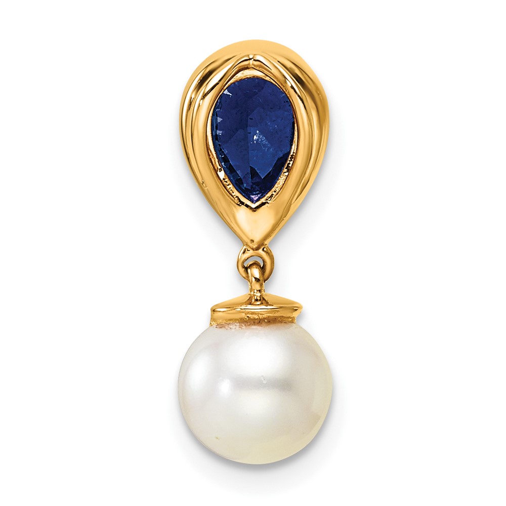 14K 6-7mm Round White Freshwater Cultured Pearl/Pear Sapphire/Diamond Teardrop Chain Slide