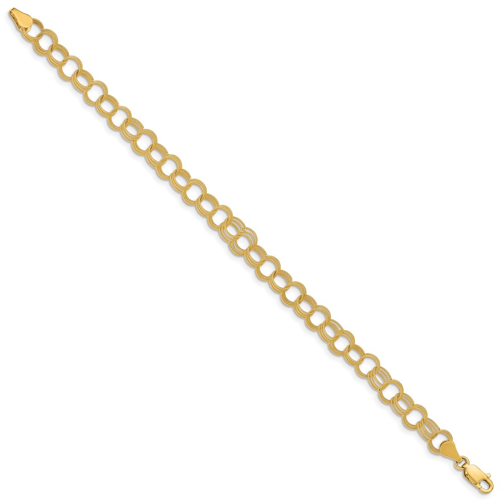 14k 6mm Solid Textured Triple Link Charm Bracelet