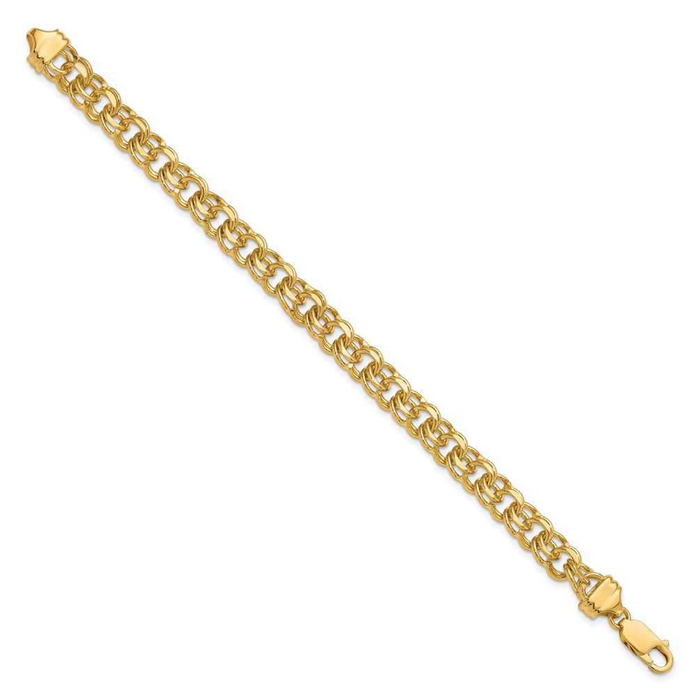 14k 8.5mm Diamond-cut Solid Heavy Double Link Charm Bracelet