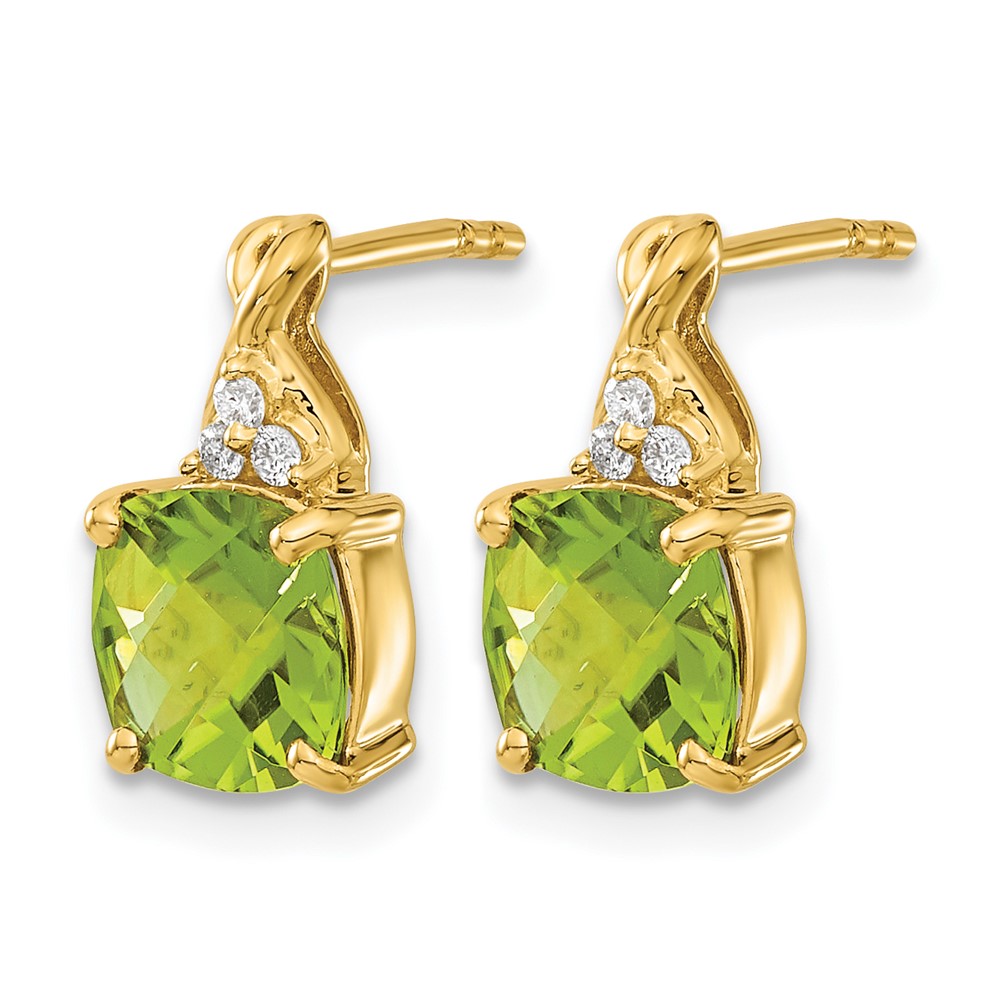 14k 7mm Cushion Checkerboard August/Peridot and Diamond Post Earrings
