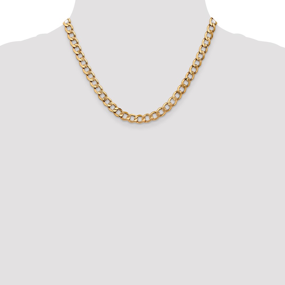 14K 7mm Semi-Solid Curb with Lobster Clasp Chain