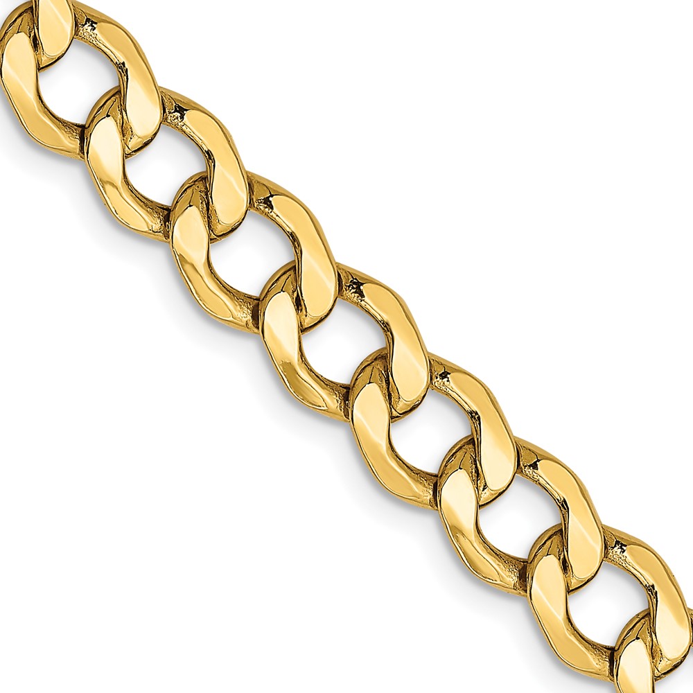 14K 6.5mm Semi-Solid Curb with Lobster Clasp Chain