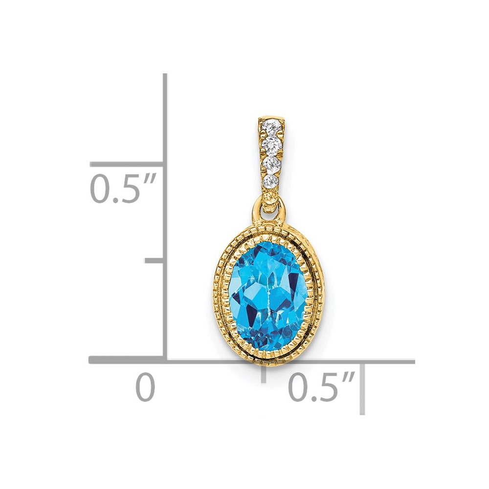 14k 7x5mm Oval Blue Topaz and Diamond Pendant