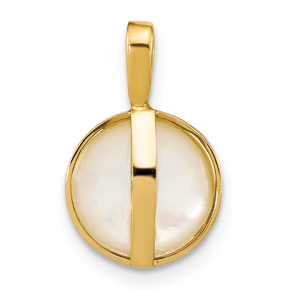 14K 9-10mm White Round Saltwater Cultured Mabe Pearl Pendant