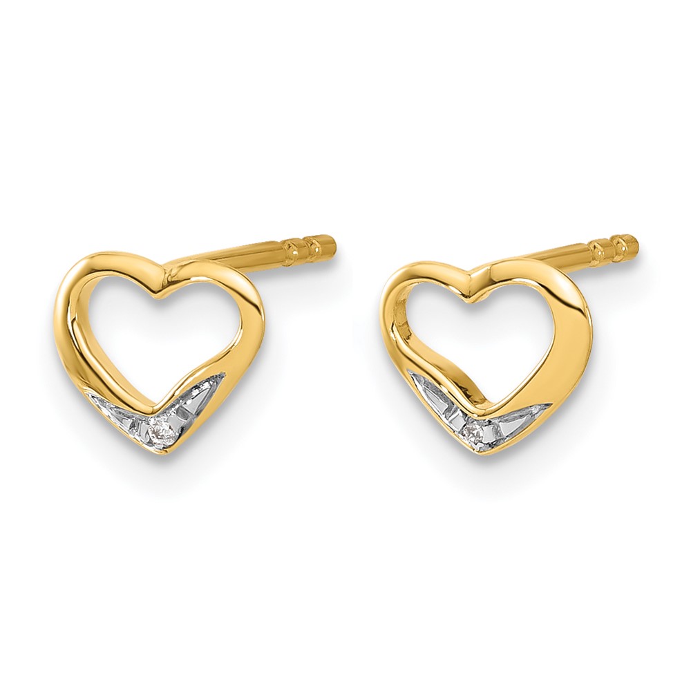 14k and Rhodium Diamond Heart Post Earrings