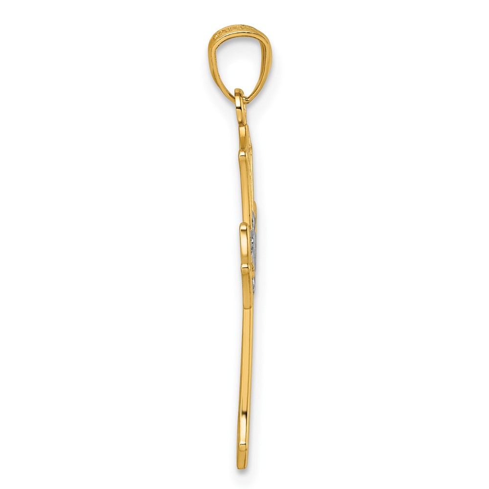 14k and Rhodium Polished Center Flower Filigree Cross Pendant
