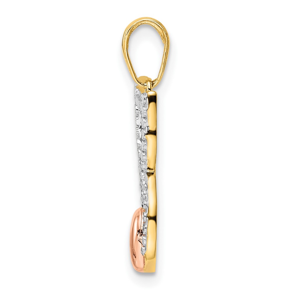 14k and White and Rose Rhodium Diamond-cut Cat with Heart Pendant