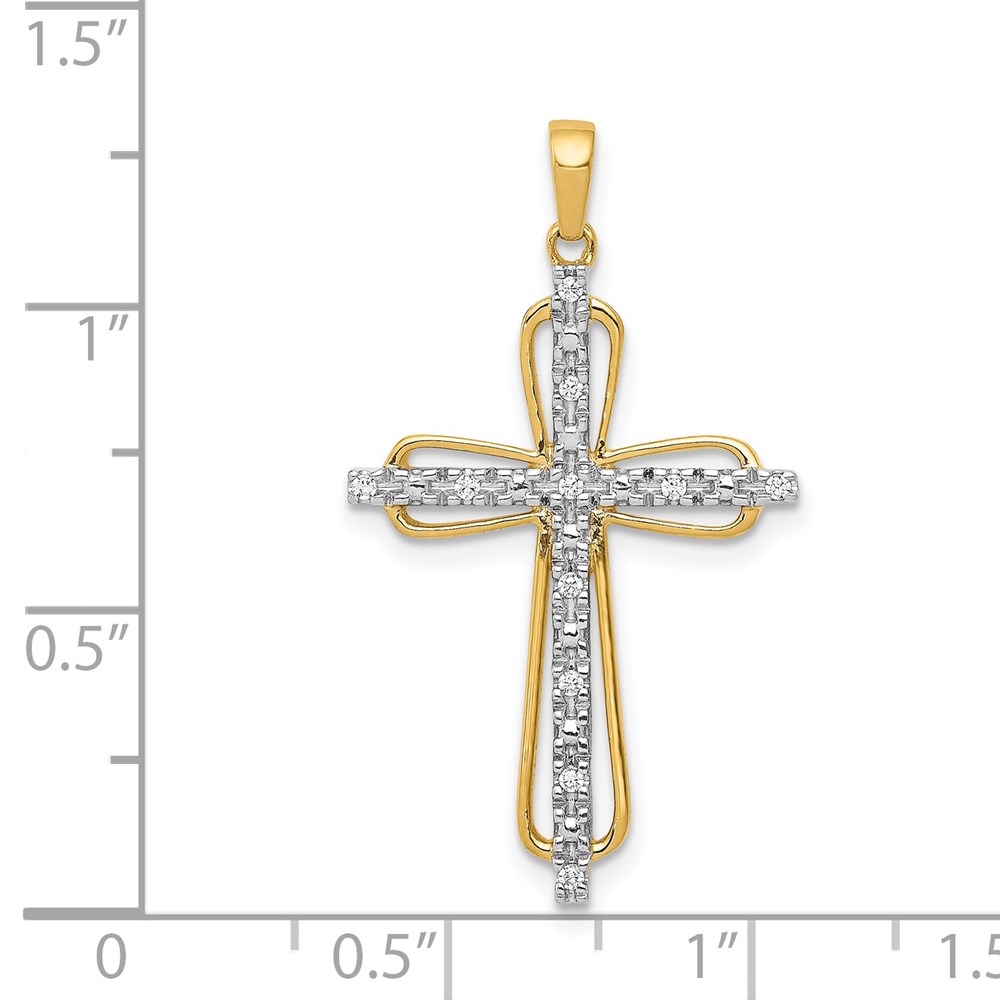 14k and White Rhodium 1/20 carat Diamond Cross Pendant