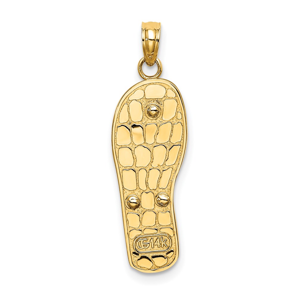 14K and White Rhodium 3-D Enameled Palm Tree and Bucket on Flip-Flop Charm