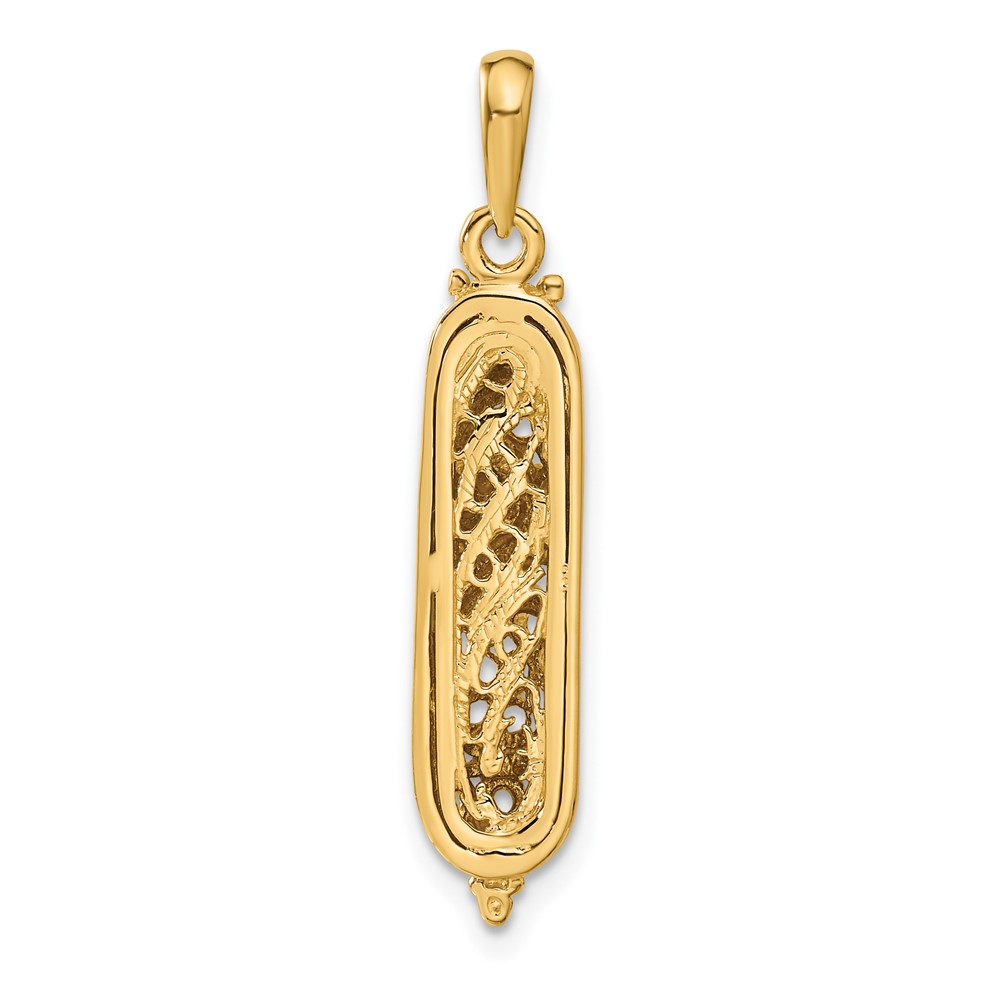 14K and White Rhodium 3-D Mezuzah with Shin Charm