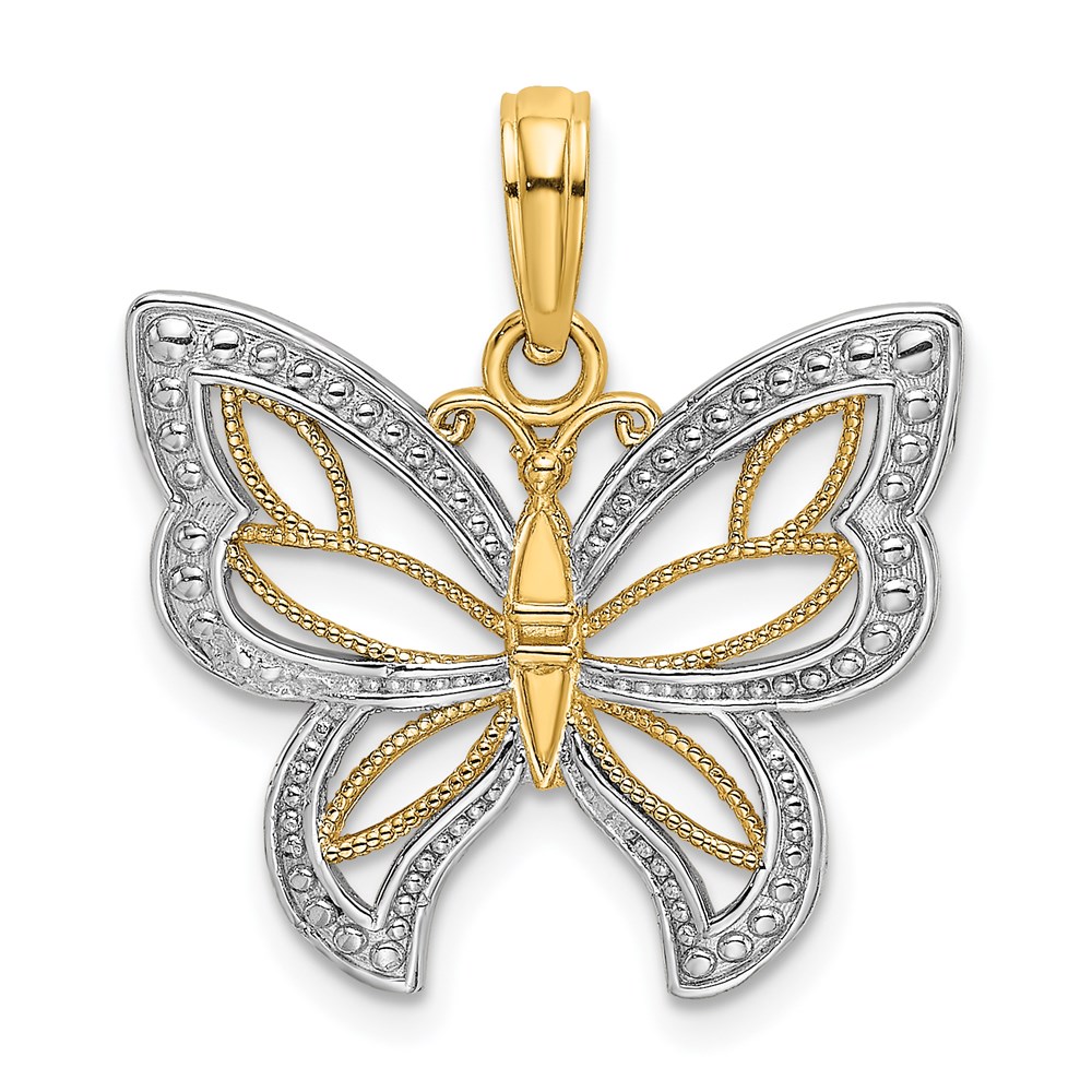 14k and White Rhodium Butterfly with Beaded Wings Charm
