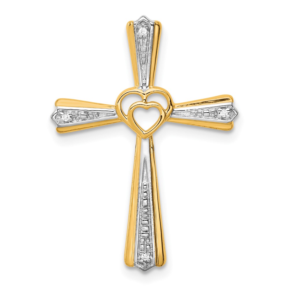 14k White Gold 1/10 carat Champagne Diamond Heart Cross Pendant