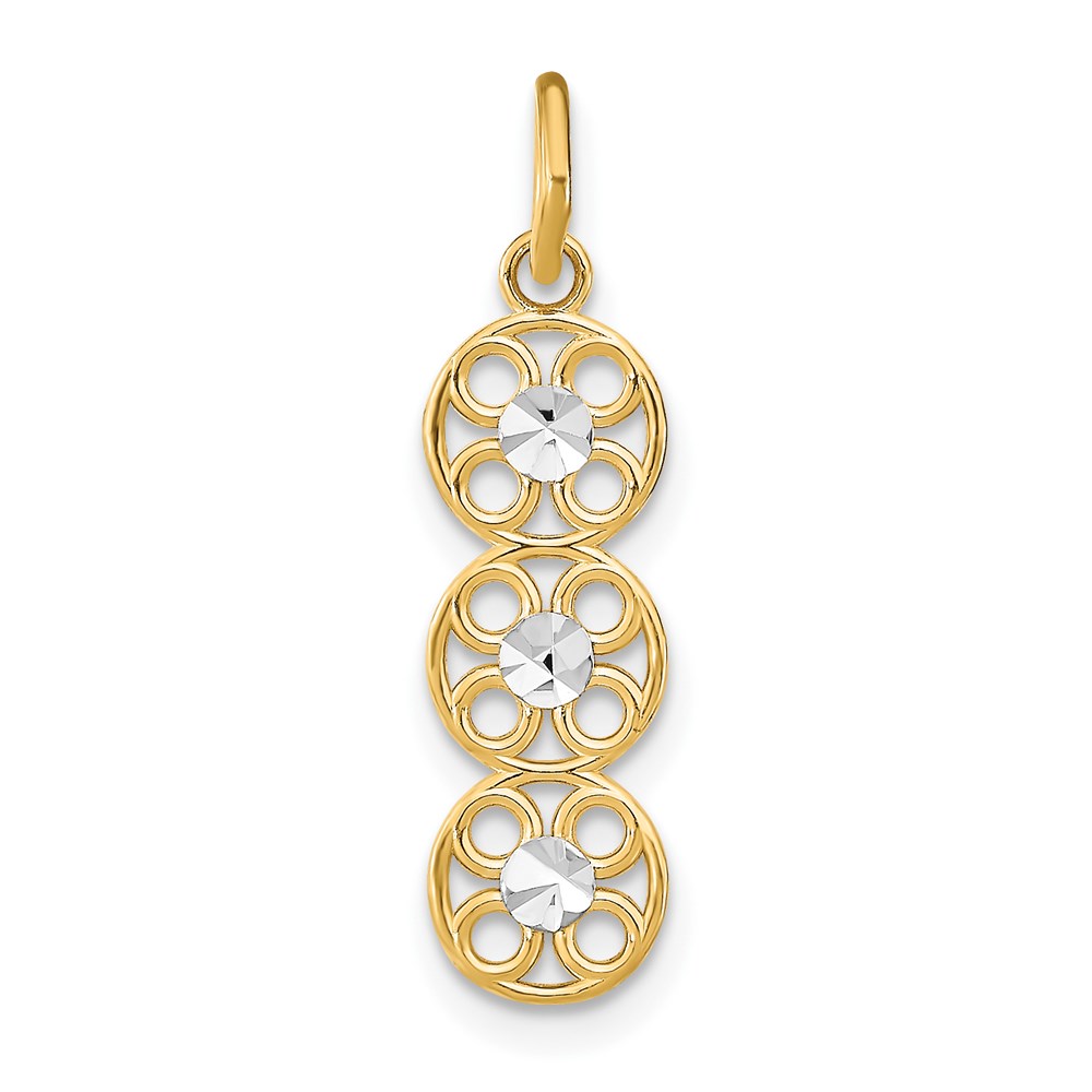 14k and White Rhodium Diamond-cut 3-Circle Charm