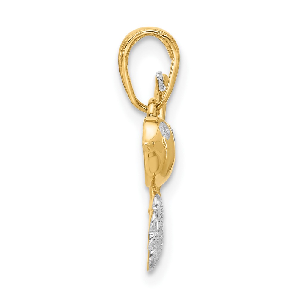 14K and White Rhodium Diamond-cut Bird Pendant