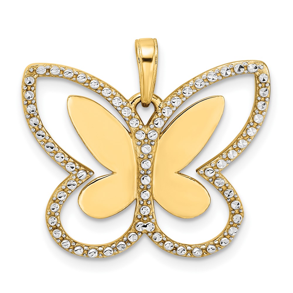 14k and White Rhodium Diamond-cut Butterfly Pendant