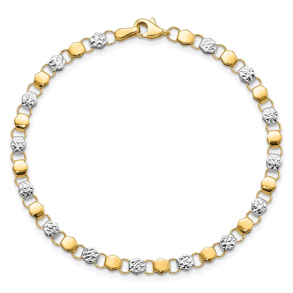 14K and White Rhodium Diamond-cut Fancy Link 7.5 inch Bracelet