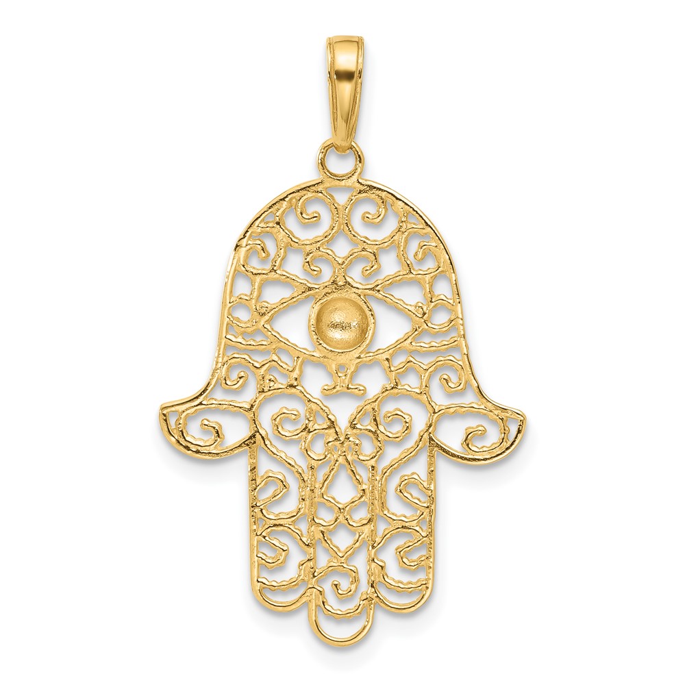 14k and White Rhodium Diamond-cut Filigree Hamsa Pendant
