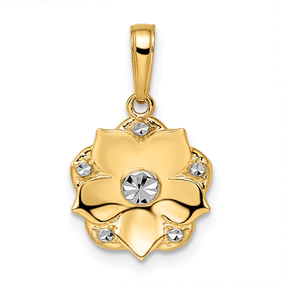 14k and White Rhodium Diamond-cut Flower Pendant