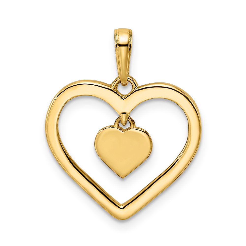 14k and White Rhodium Diamond-cut Heart Dangle in Heart Pendant