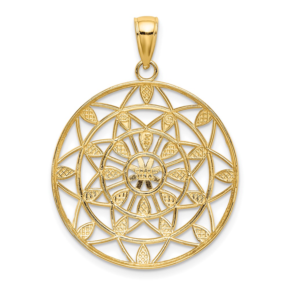 14K and White Rhodium Diamond-cut Medallion Pendant
