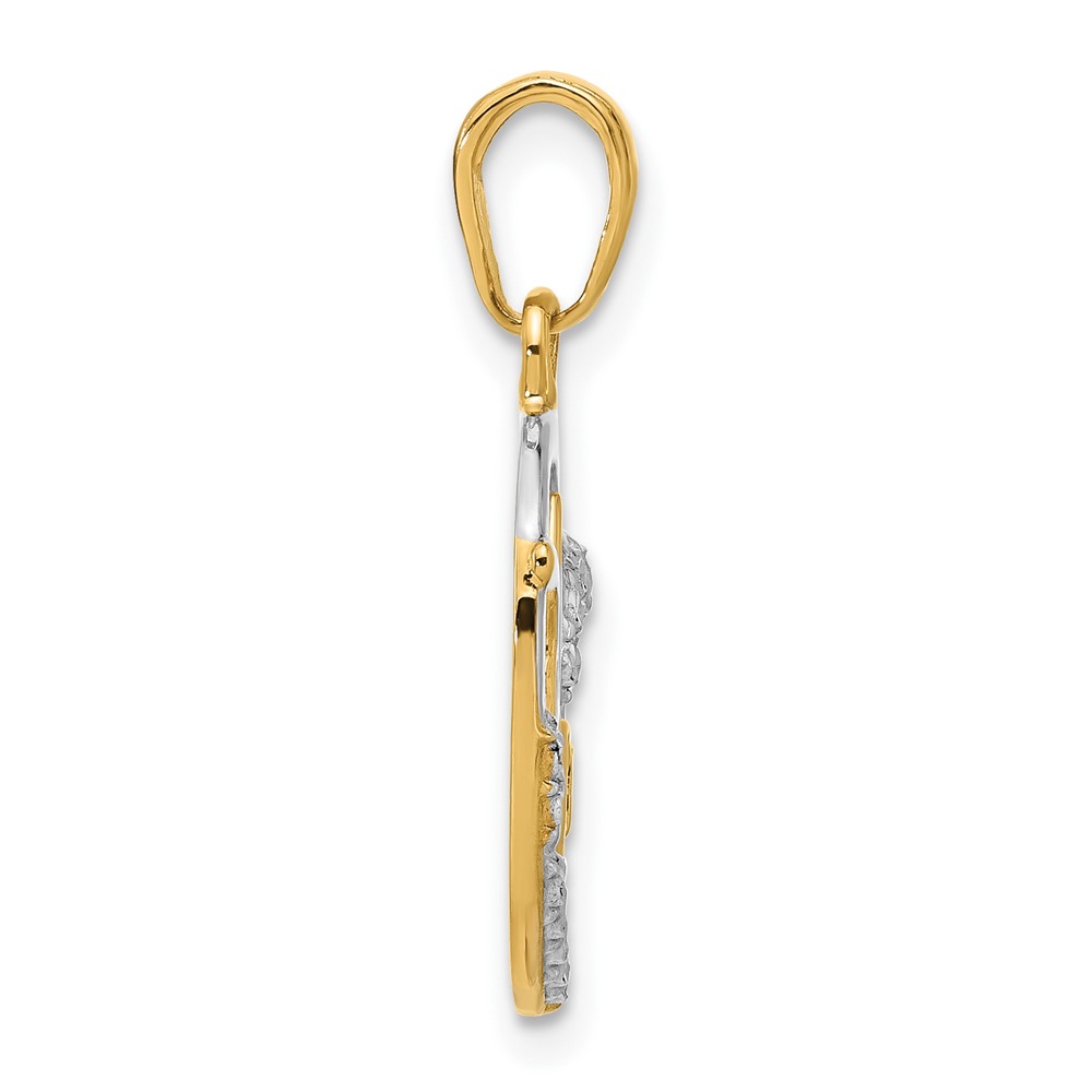 14k and White Rhodium Diamond-cut MOM Heart Pendant