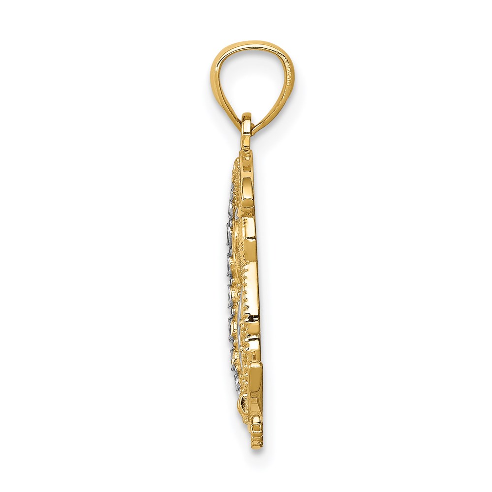 14K and White Rhodium Diamond-cut Owl on the Moon Pendant
