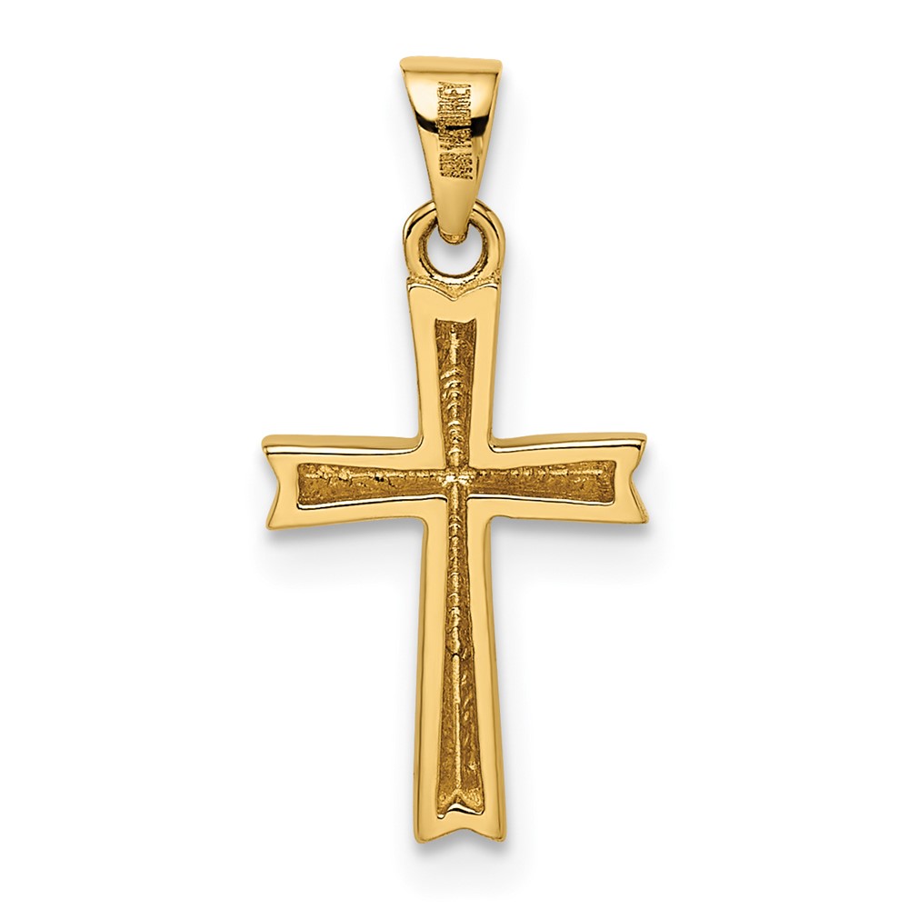14k and White Rhodium Diamond-cut Small Latin Cross Pendant