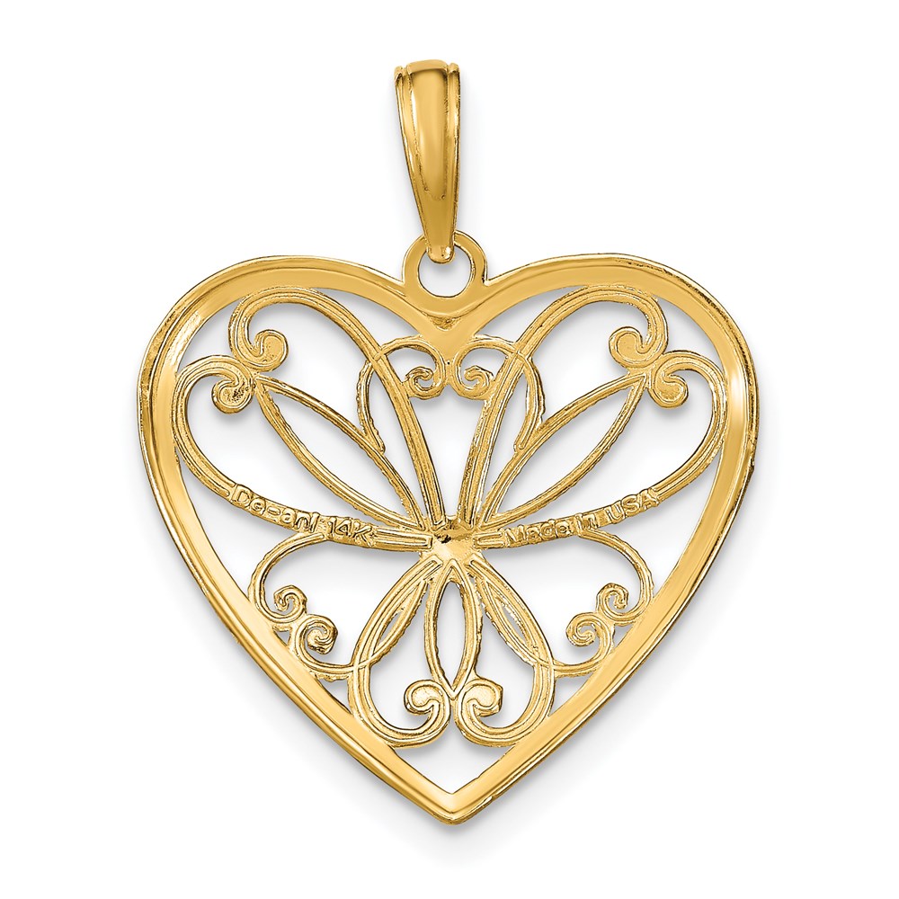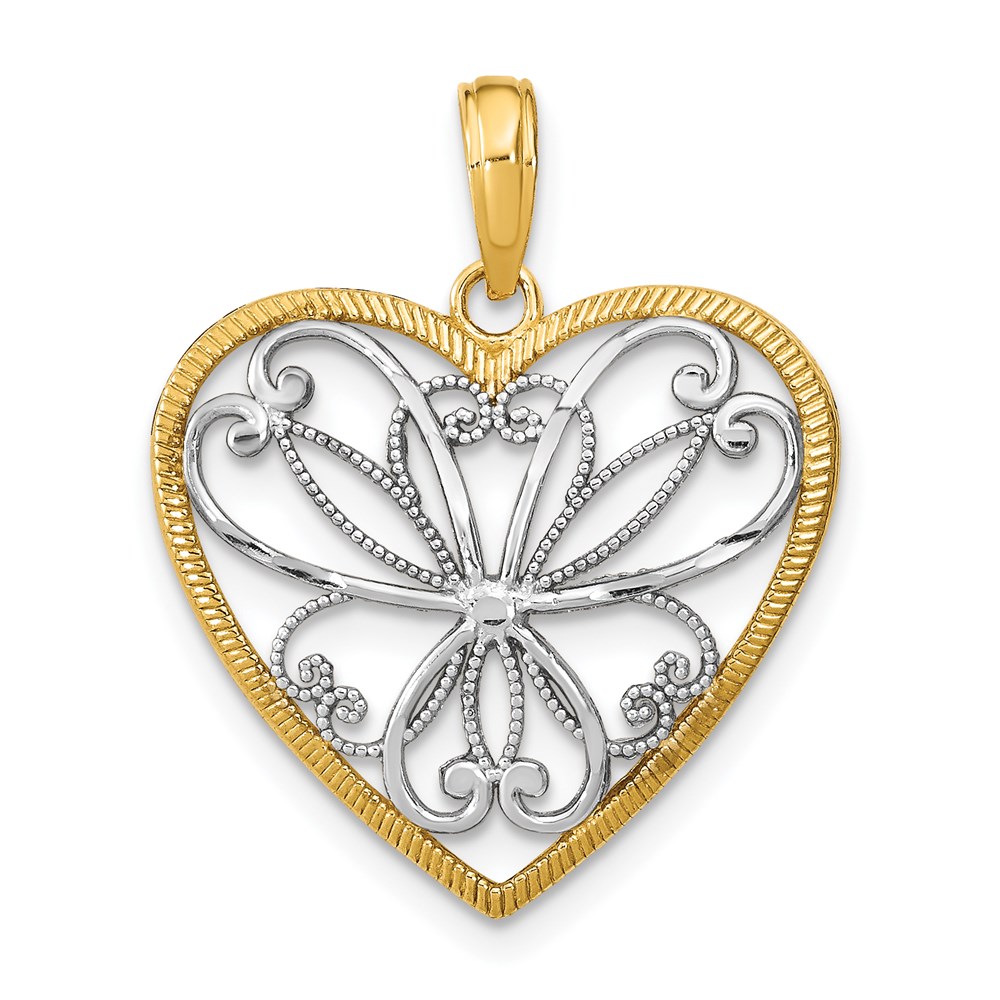 14k and White Rhodium Filigree Heart Charm