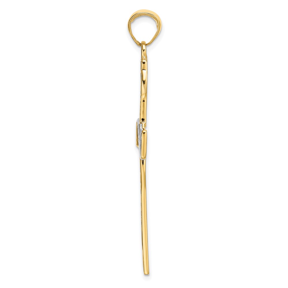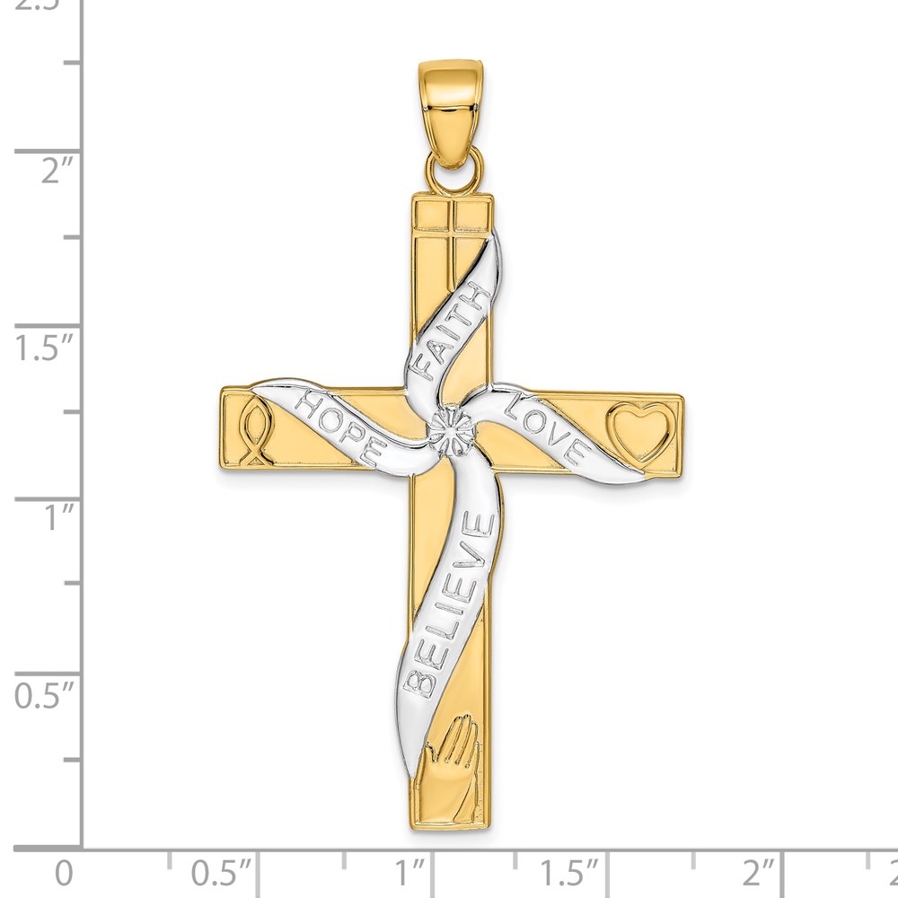 14K and White Rhodium Large HOPE FAITH LOVE BELIEVE Cross Pendant
