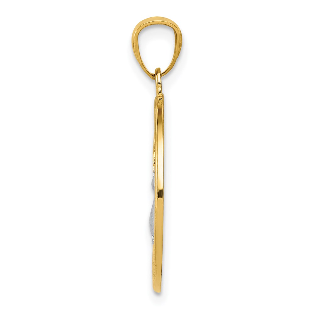 14K and White Rhodium Polished PEACE Dove Circle Pendant