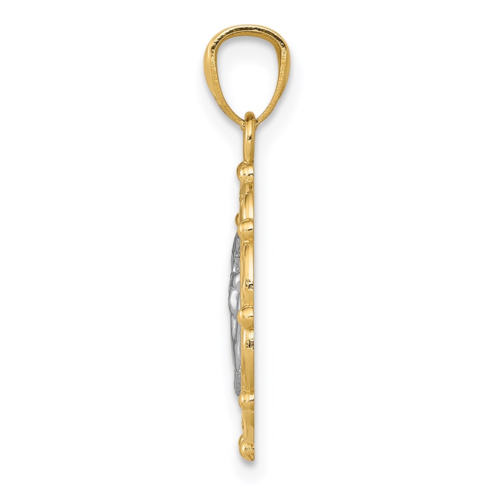 14k and White Rhodium Scalloped Frame Cherub Round Pendant