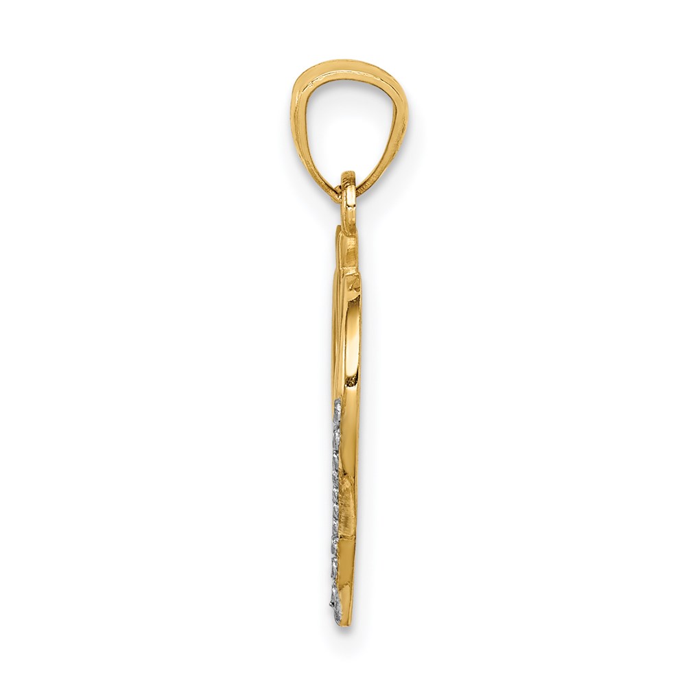 14K and White Rhodium Sitting Cat in a Heart Pendant