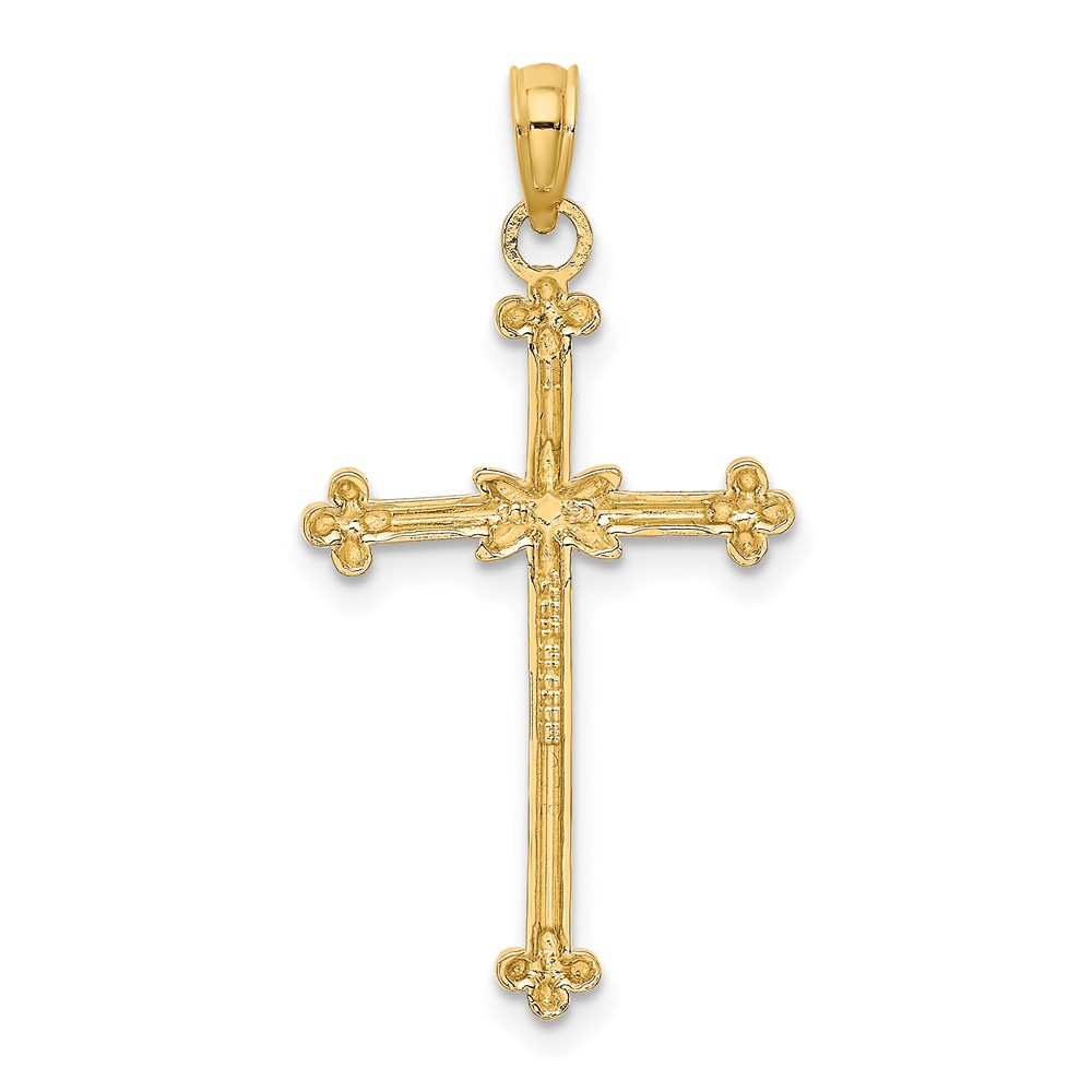 14K and White Rhodium Diamond-cut Cross Charm