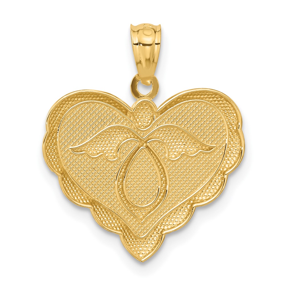 14K Angel in Heart Scalloped Edge Pendant