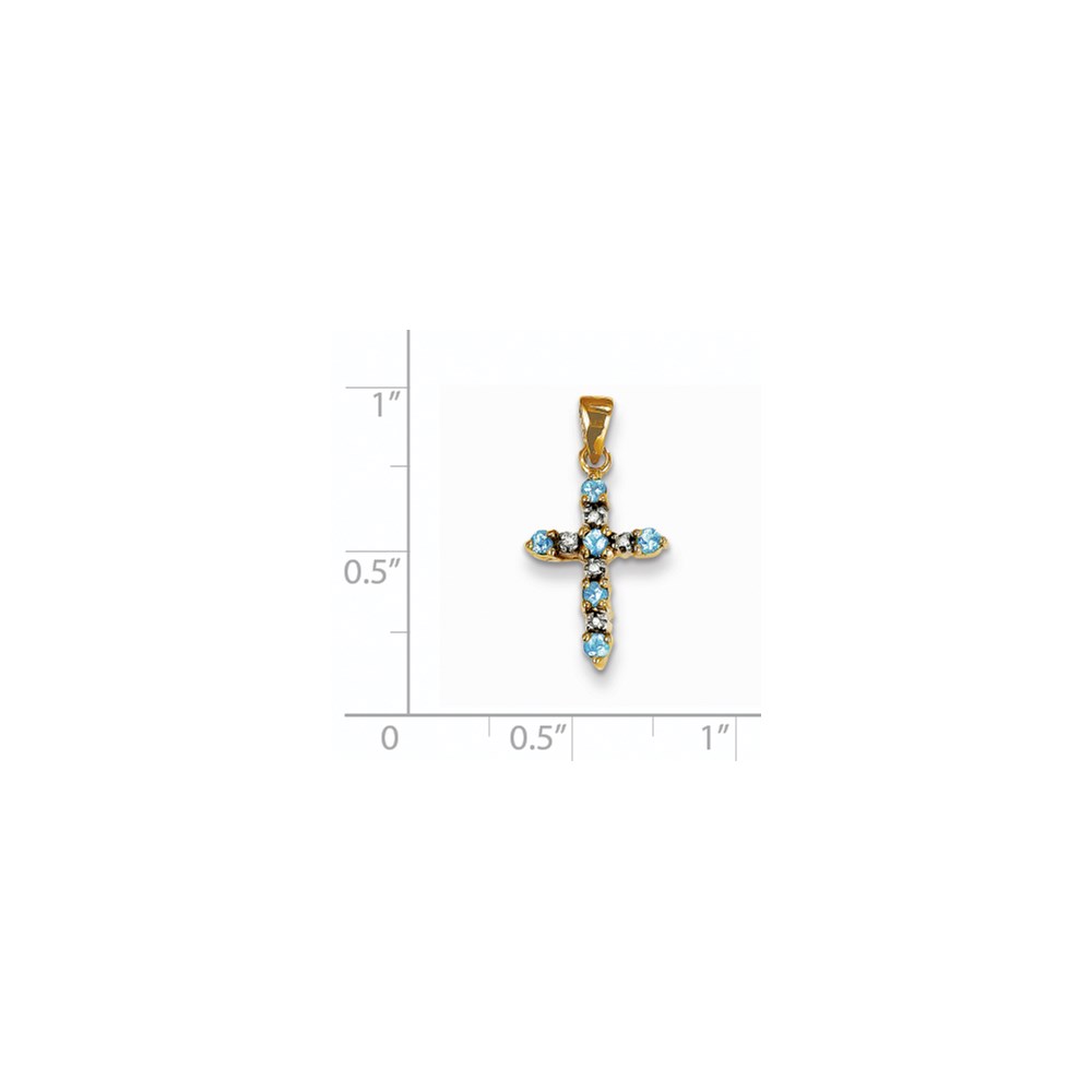 14k Blue Topaz and Diamond Cross Pendant