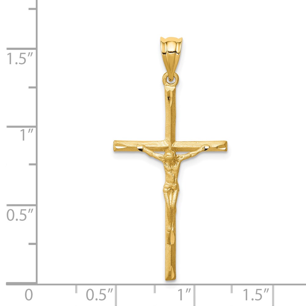 14K Brushed and Diamond-cut Crucifix Cross Pendant