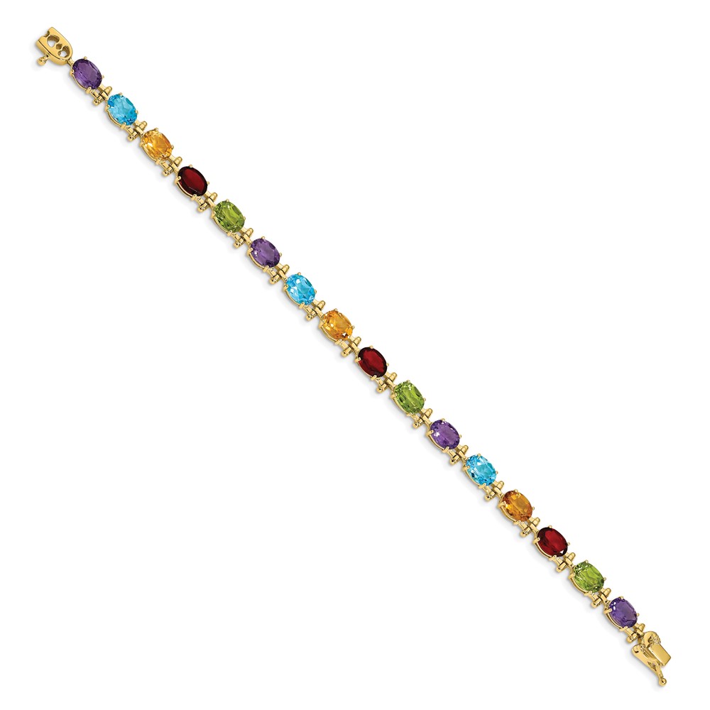 14k Complete Alternating Oval Amethyst/Peridot/Garnet/Citrine/Swiss Blue Topaz 7 inch Rainbow Bracelet