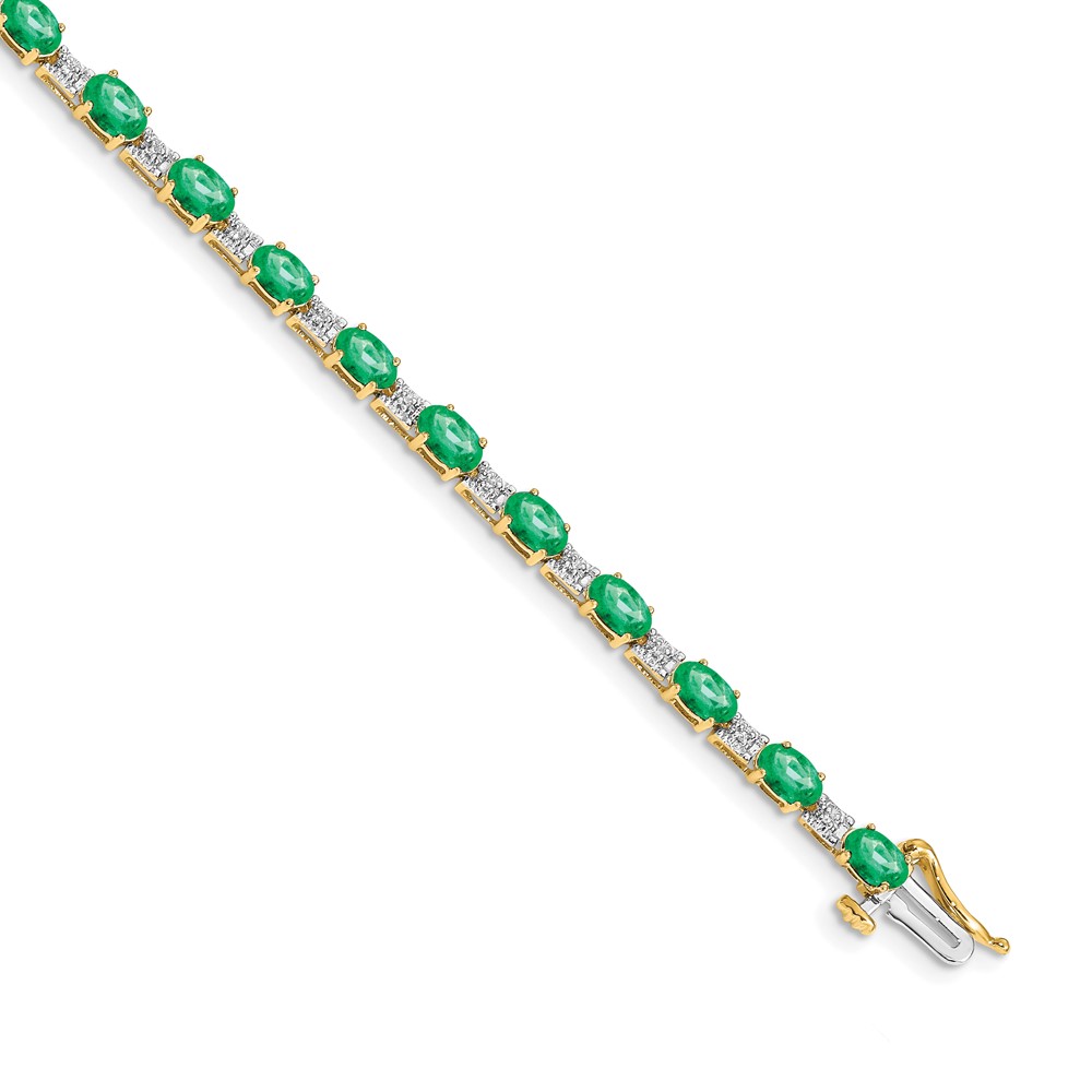 14k Complete Diamond and Oval Emerald 7 inch Bracelet