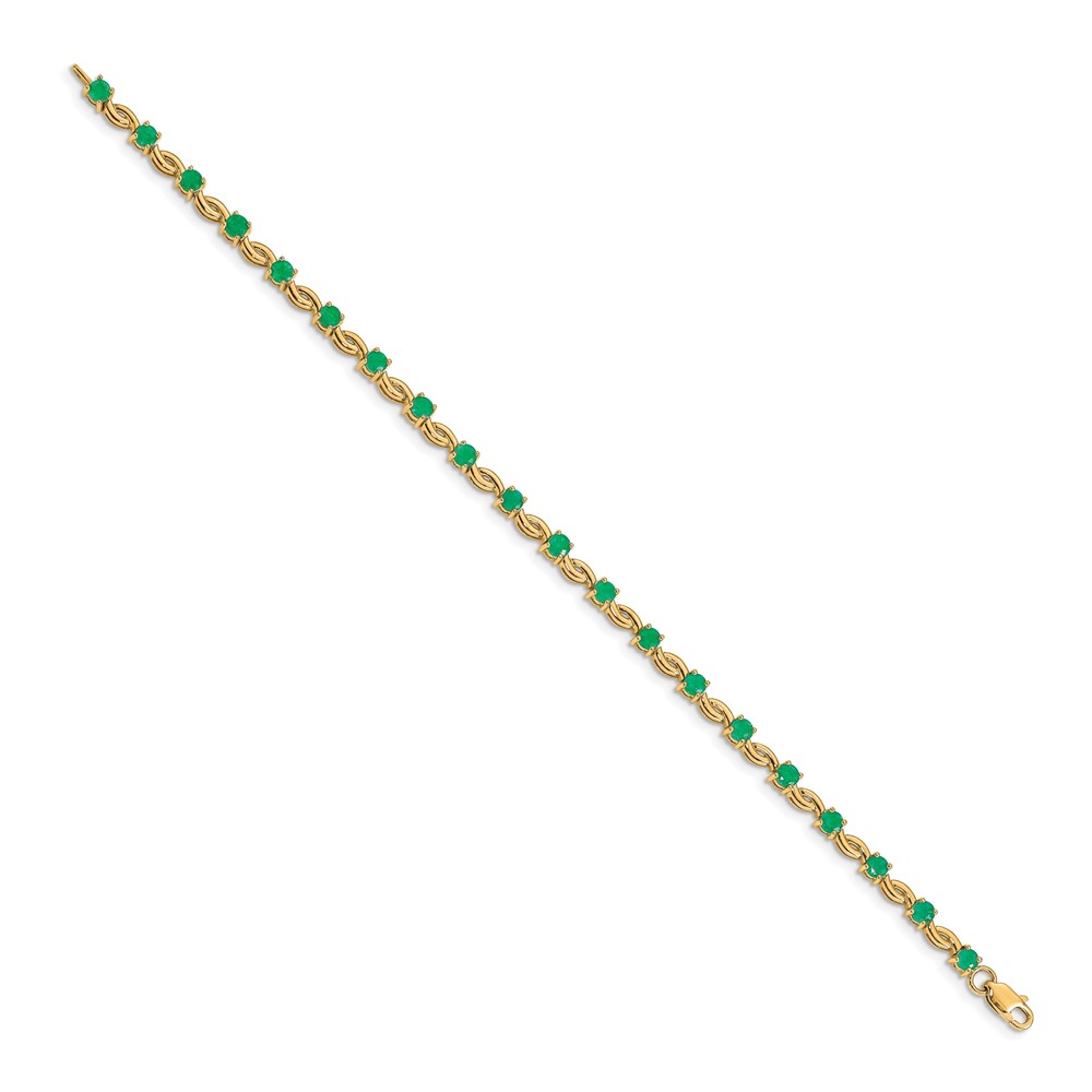 14k Complete Round Emerald Fancy Link 7 inch Bracelet