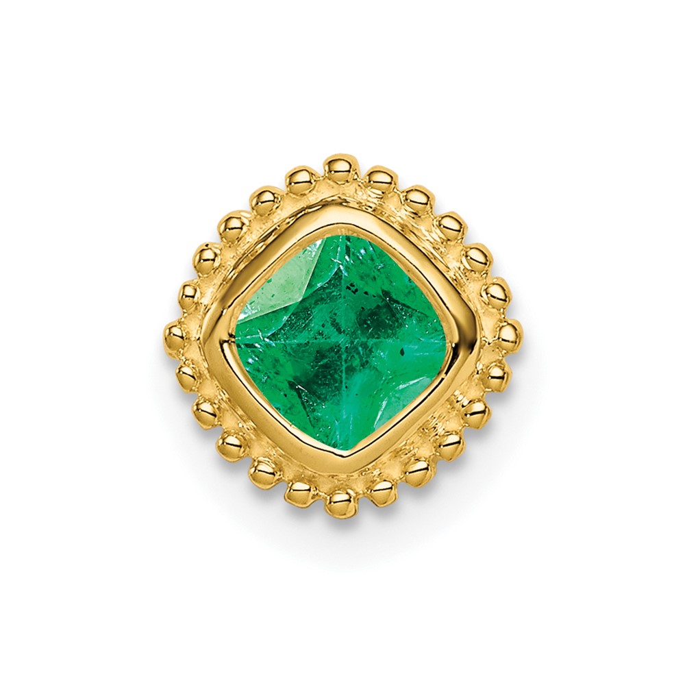 14k Cushion Emerald Beaded Edge Chain Slide