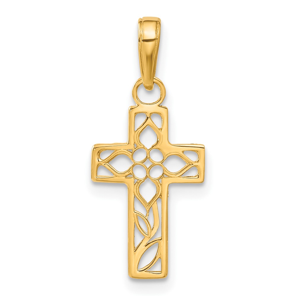 14K Cut-out Flower In Diamond-cut Cross Charm