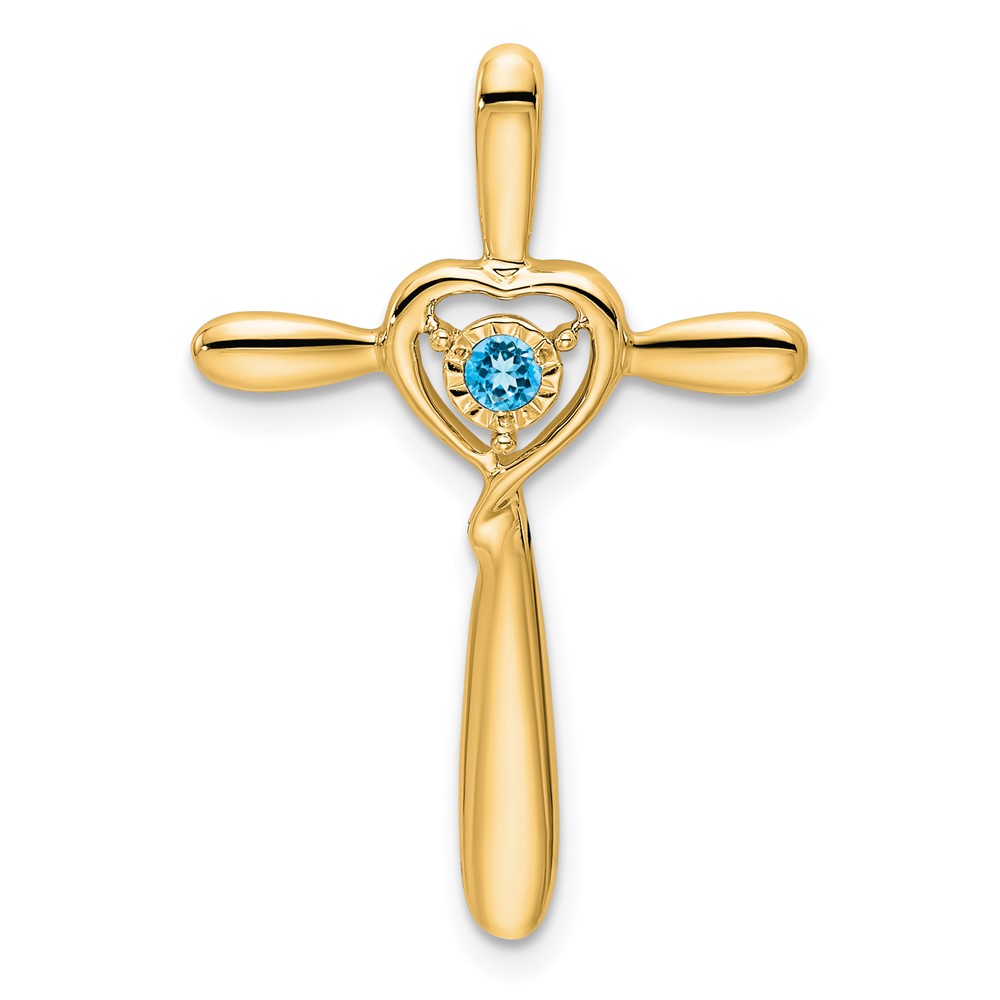 14k December/Blue Topaz Cross with Heart Chain Slide
