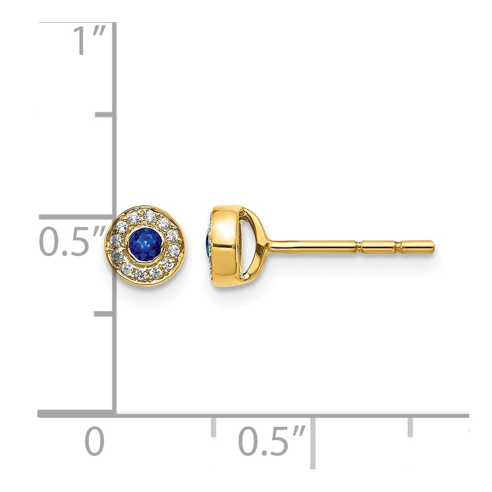 14k Diamond and 2.3mm Round Sapphire Halo Post Earrings